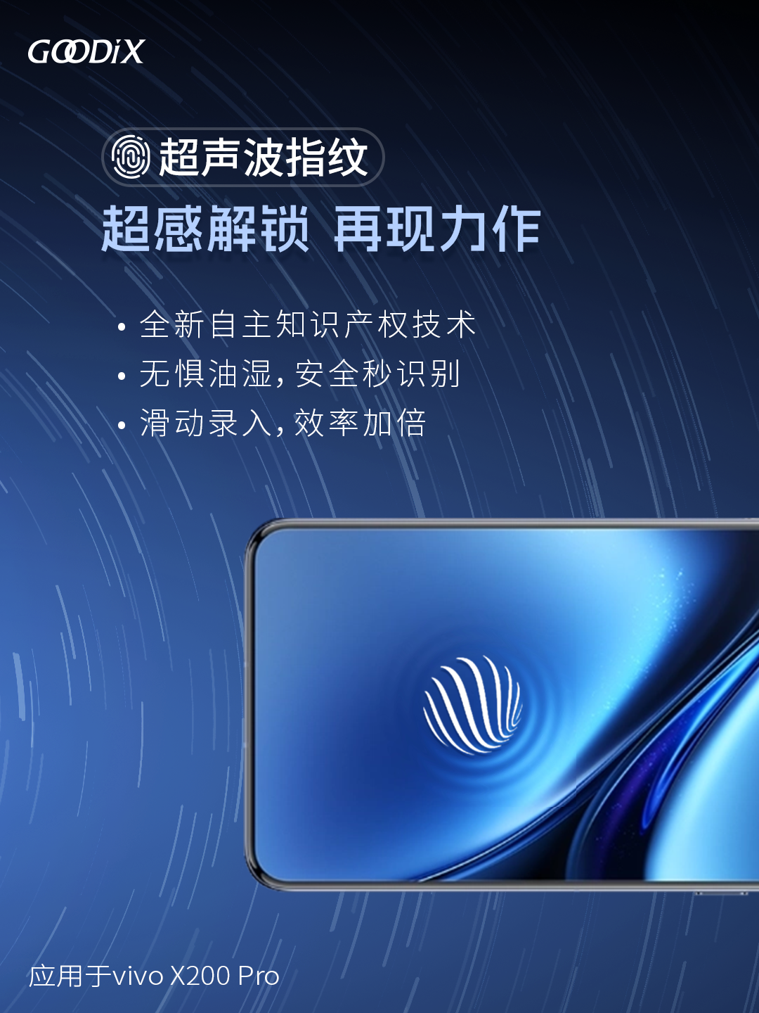 X200 Pro是vivo聯(lián)合匯頂科技,加速超聲波指紋普及的又一力作。匯頂超聲波指紋方案不僅為X200 Pro帶來更快捷、安全、不懼油濕的解鎖體驗(yàn),并再次引入業(yè)界首創(chuàng)的超聲波指紋“滑動(dòng)錄入”功能:基于匯頂領(lǐng)先的圖像算法技術(shù),只需在指紋區(qū)域轉(zhuǎn)圈移動(dòng)手指,即可快速錄入指紋,效率倍增。